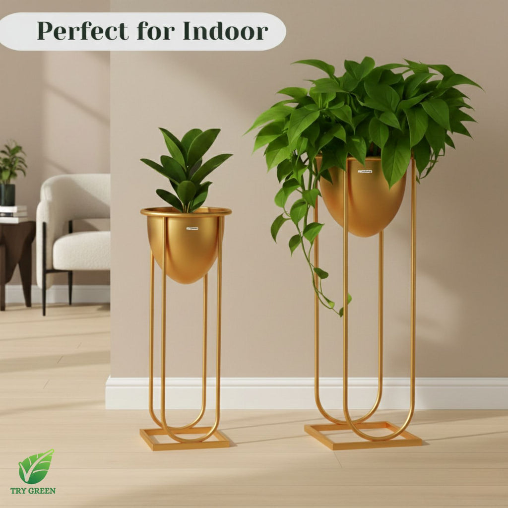 🪴 Modern Elegance: Sleek metal stands paired with designer pots to suit any contemporary space.