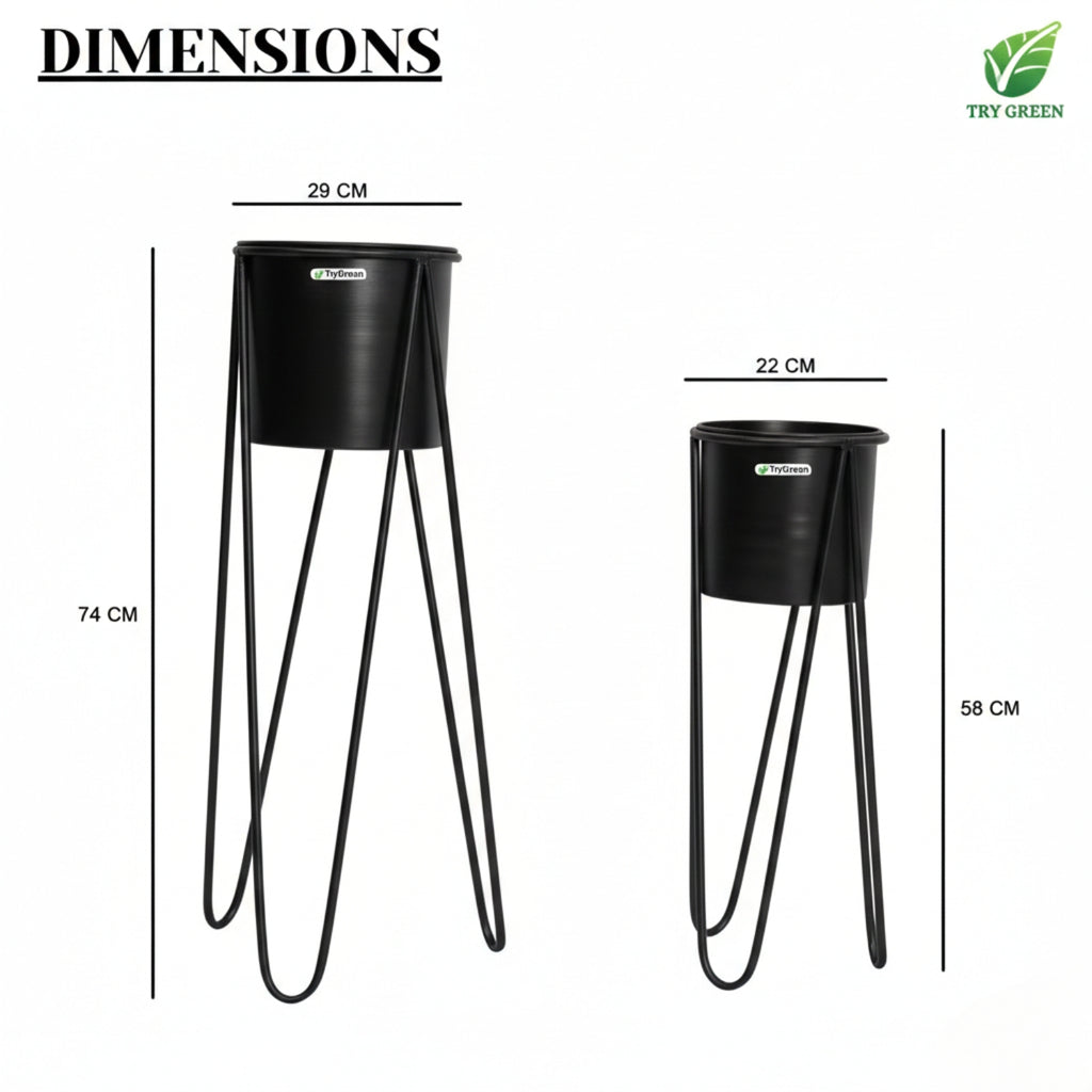 TryGreen- Strin Stylish Pots with Stands for Elegant Spaces(Black)