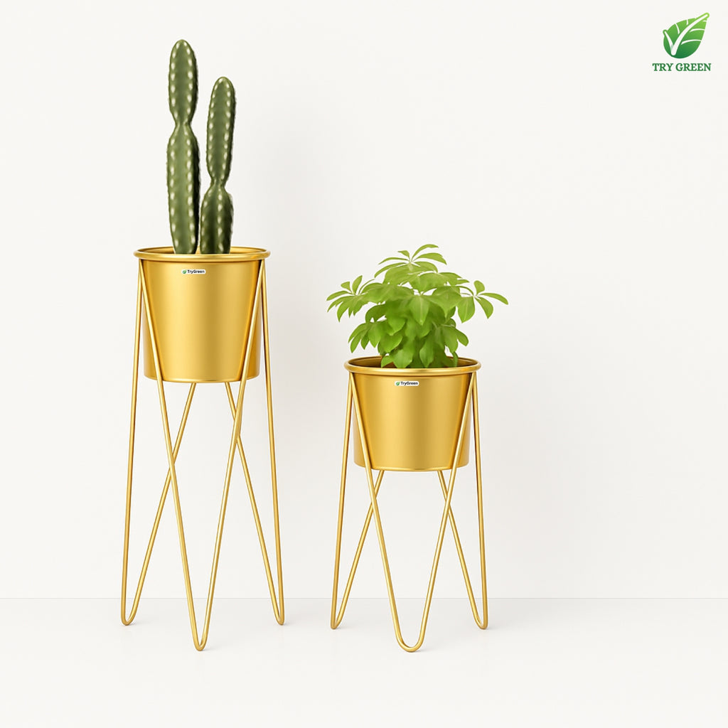 🪴 Modern Elegance: Sleek metal stands paired with designer pots to suit any contemporary space.