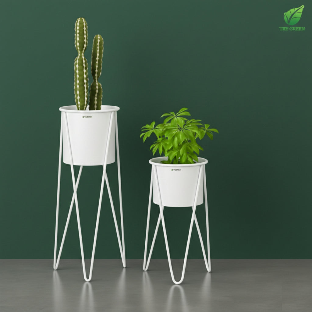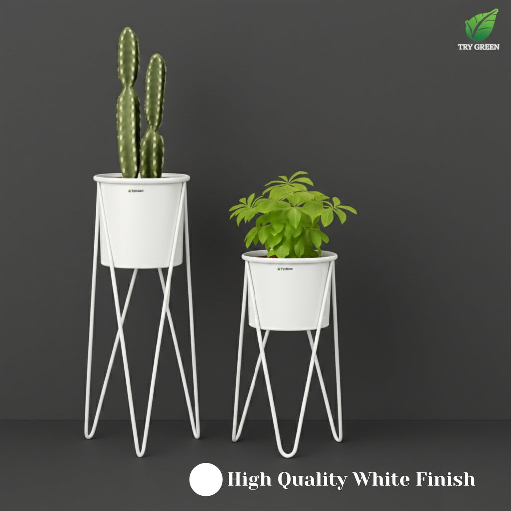 TryGreen- Strin Stylish Pots with Stands for Elegant Spaces(White)