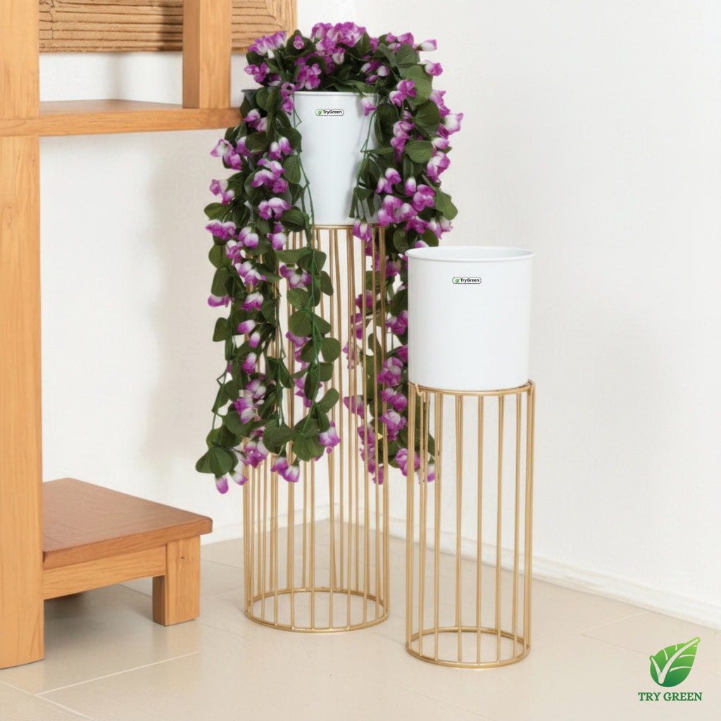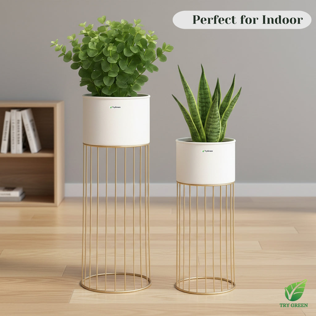 Enhance your plant display with our elegant pots paired with stylish metal stands. Designed to uplift your space and your plants, this collection blends modern aesthetics with practical function, making it a must-have for any indoor or balcony setup.